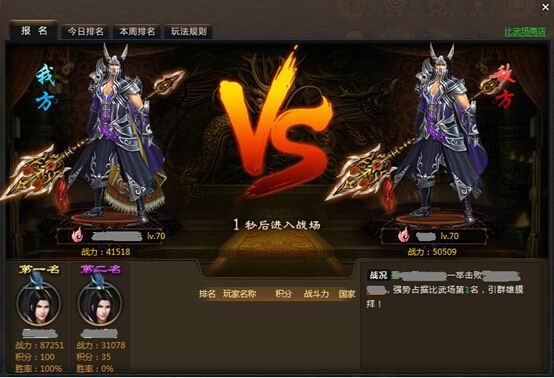 等级达到40级的玩家每周一三五日晚上20:30-21:00可以参与,点击界面右上方【比武场】图标即可进入比武场。