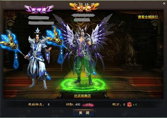 C.每日积分排行前三的玩家可以获得【武状元】【武榜眼】【武探花】独特称号,使用称号获得属性加成。