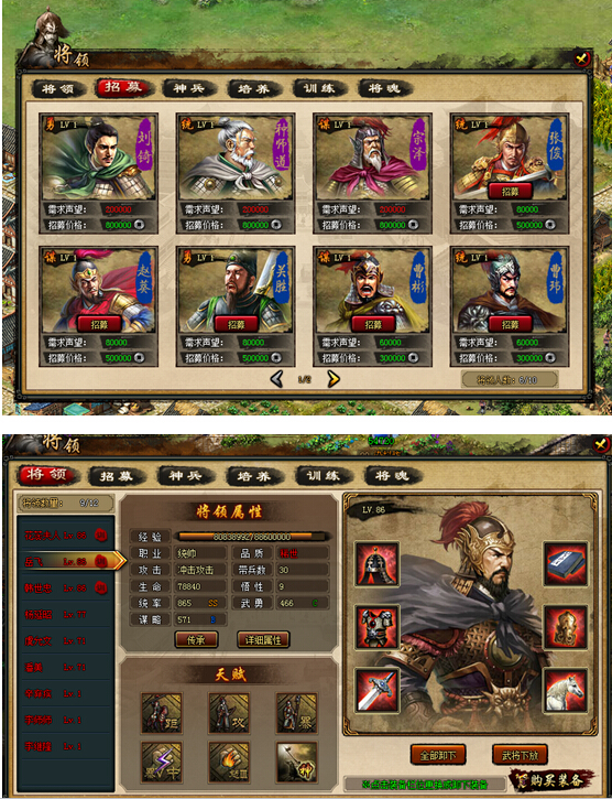 不同的将领属性不同,在招募将领中声望越高的将领,其属性也相应的提升,其次,不同的将领带的天赋技能也不同,因此需要和将领技能搭配使用。