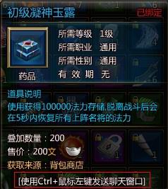玩家可以通过点击鼠标左键+Ctrl,将道具的超链接发送到聊天框中。