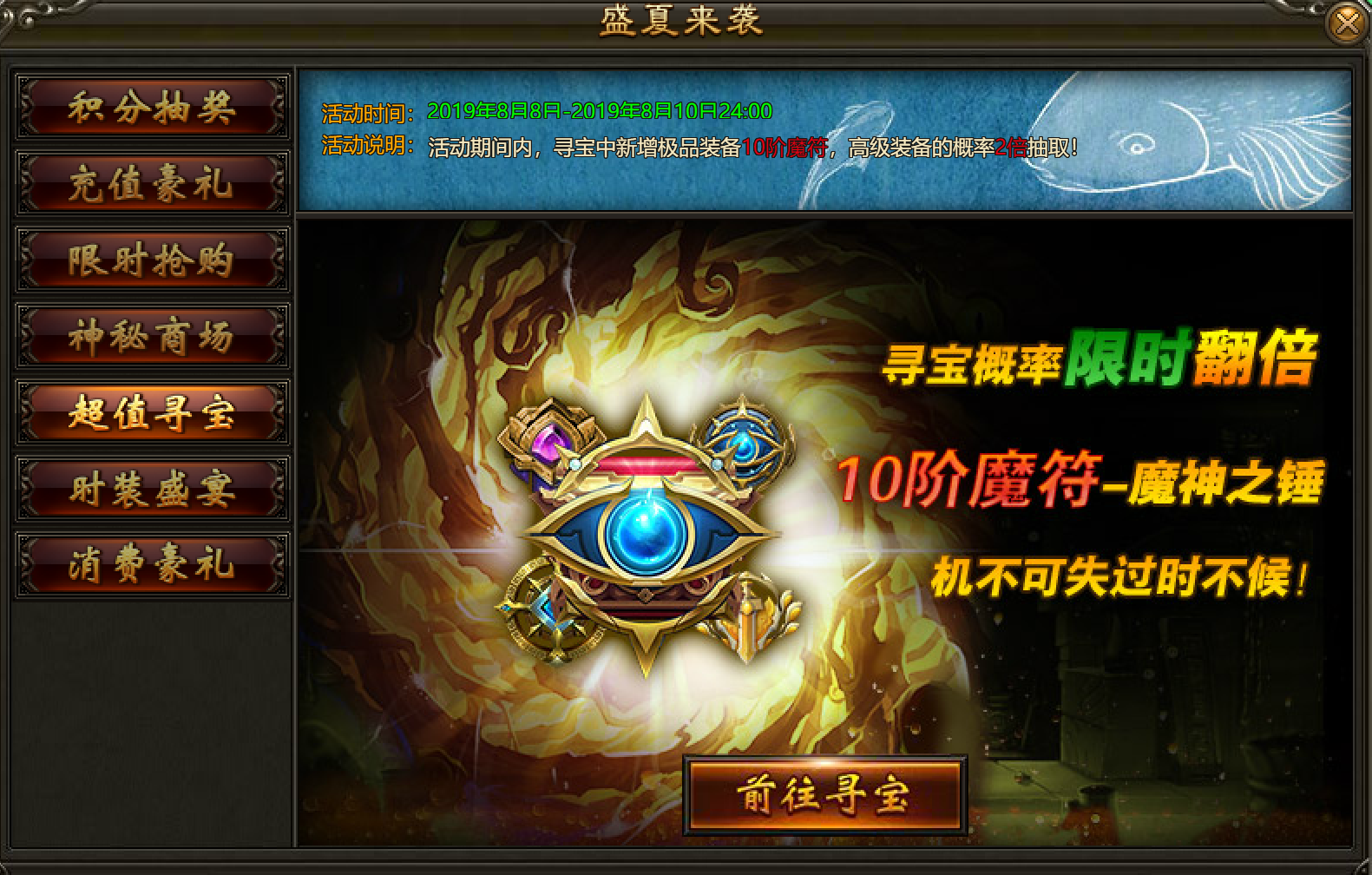 2. 活动期间,王之宝藏可抽取灭神装备!高级装备概率翻倍!活动限时3天,机不可失过时不候