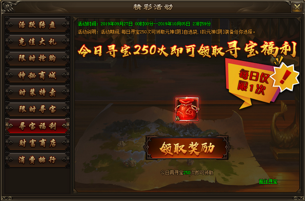 活动内容:活动期间,寻宝可获得大量财富卡,使用财富卡可在财富商城兑换海量极品道具。