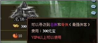 3、名侠寻访:VIP4以上使用。可以获得名侠和奇侠