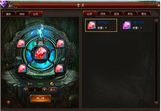 4颗相同类型相同等级的宝石可以合成1颗相同类型更高等级的宝石。