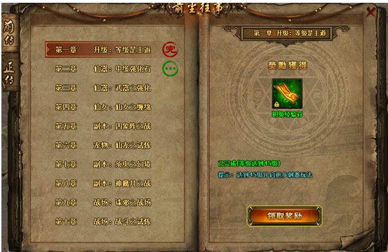 、在完成上一章后,下一章才会开启。