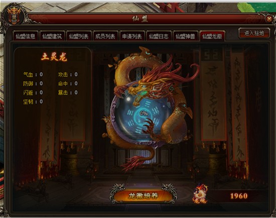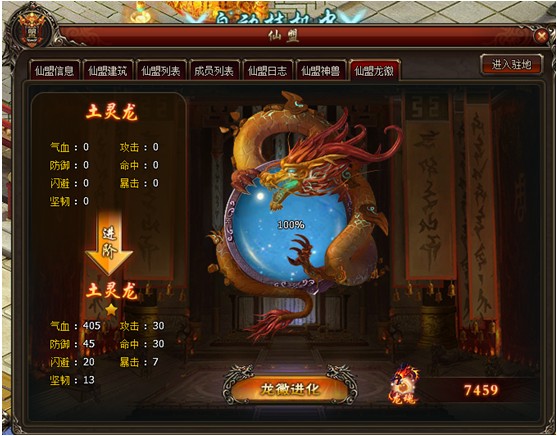 2、在仙盟面板——仙盟龙徽界面可将龙魂注入龙徽中。