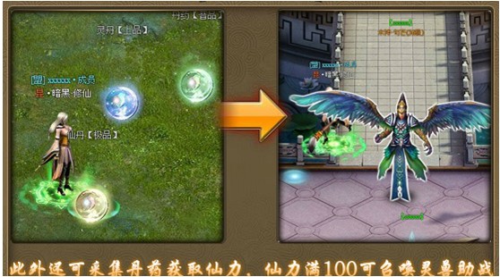 5> 采集丹药可以获得积分奖励,如果仙盟占领了五行据点,则采集丹药还可以获得仙力。消耗100点积分可以召唤灵兽,灵兽可以大幅度增加附近仙盟成员的攻防。