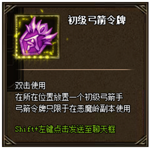 每次进入恶魔岭都可以在指挥官NPC处领取6个初级弓箭令牌,如果想要拥有更多的经验,可以买些高级弓箭令牌帮忙打恶魔。 (角色不可以攻击本地图的怪物)