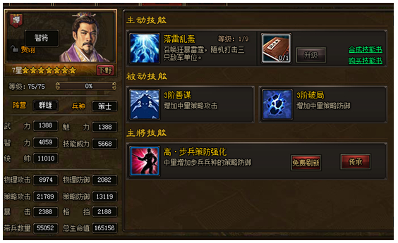 iii. 被动技能:战斗中始终生效,越高星级的武将被动技能越多,被动技能的等级也越高。