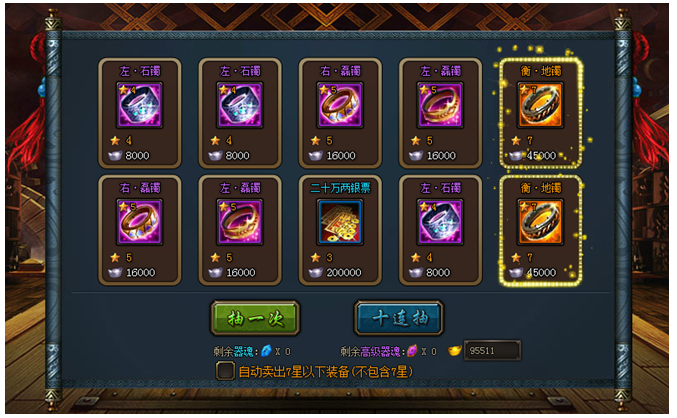 1.抽一次:几率获得7星首饰。