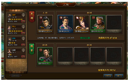 a) 君临三国,群雄投效。如何才能率其征战?在底部按钮中点击上阵,进入上阵系统将您心仪的武将拖入右侧的前军或中军内就能带领三国名将开始征战天下啦。