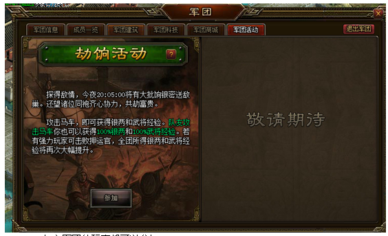 e) 在整个运粮的过程中,会出现押运官进行,击杀押运官后,可以大幅提高活动最终奖励。整个活动中会出现4个押运官,击杀越多,奖励倍数越大。