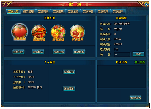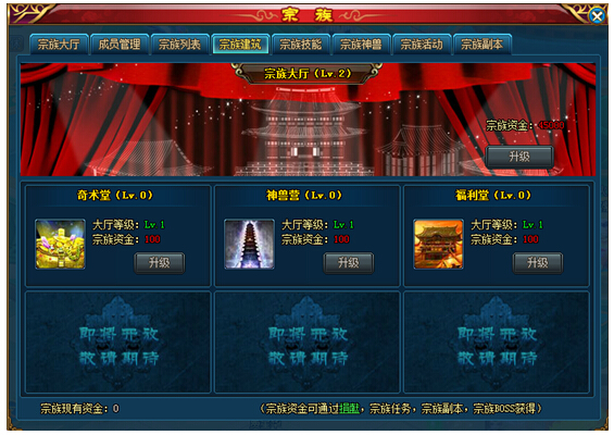 2、福利堂:升级福利堂可增加宗族福利,福利堂等级越高,可领取的宗族福利越多;