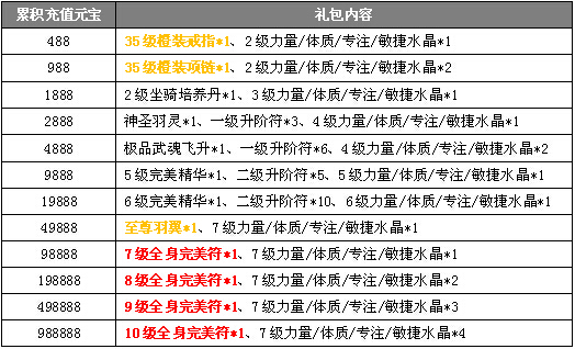 活动规则:活动期间,凡是角色累积充值达到相应条件,将会获得我们提供的以下大礼,让您的绝色唐门之旅充满惊喜。