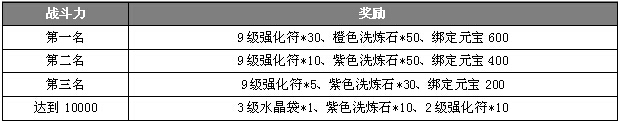 活动规则:战斗力前三竞争超值大礼,评分一样,先到先得。