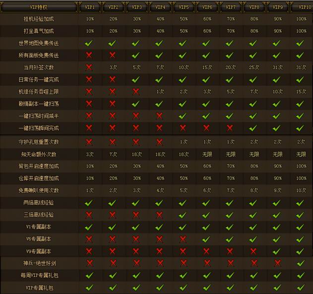 VIP1:开启VIP1专属副本,挂机打坐经验加成,世界地图免费传送,获得珍惜道具——凤血