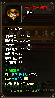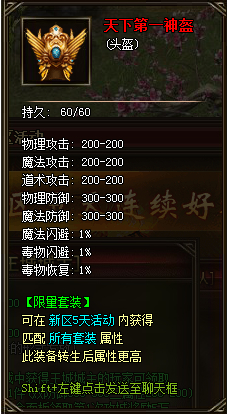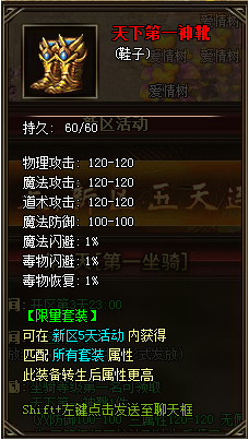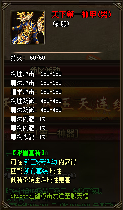 全民参与奖励:神器时装的极品等级达到10级以上的玩家可领取初级兽魂石200颗(用于提升坐骑)、鉴宝镜1枚。