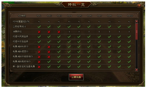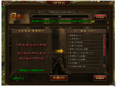 c) 当玩家成功开通VIP成为会员后,VIP图案将被点亮,VIP成长值以10/天增长,累计一定数值,VIP等级将会提升到下一等级;