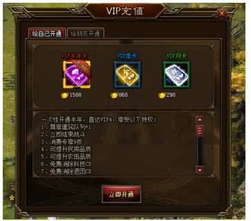 1. 玩家可以在这里选择给自己开通或者给朋友开通