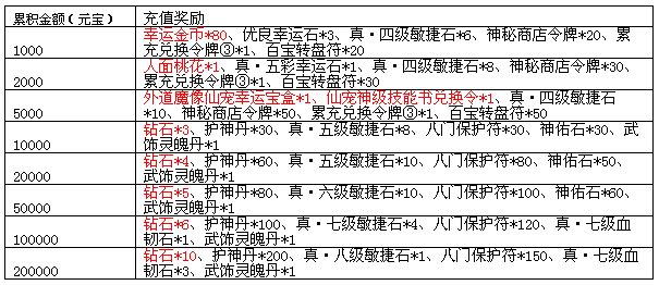 4、累积充值大礼:活动期间,累积充值达到指定额度,还可以获得以下超值丰厚的奖励哦!