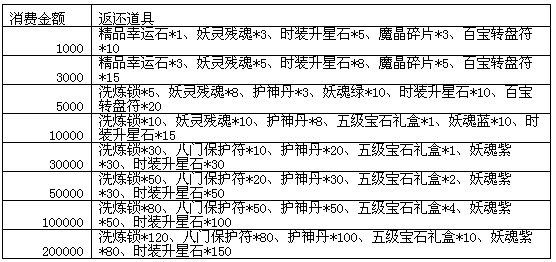 活动规则:活动期间,玩家在除市场外其他全部系统累积消费至指定额度,可获得额外的奖励。