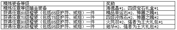活动规则:活动期间,玩家通过橙装精炼获得任意一件橙装(包括橙色武器)或精炼成功任意暗金装备,即可获得系统奖励一份。