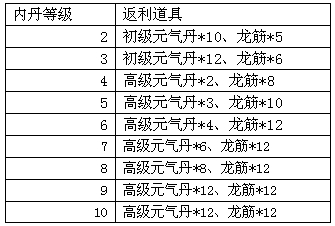 活动规则:活动期间,将橙色品质内丹升级到指定级别,可获得额外系统赠礼。