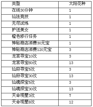 1.活动期间,玩家完成以下指定游戏内容可获得太阳花种,不同数量太阳花种可兑换不同级别的太阳花;