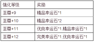 活动规则:活动期间,任意装备至尊强化成功至指定级别,都可获得额外奖励。