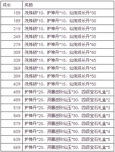 活动规则:活动期间,将仙宠提升至指定成长可获得额外奖励。